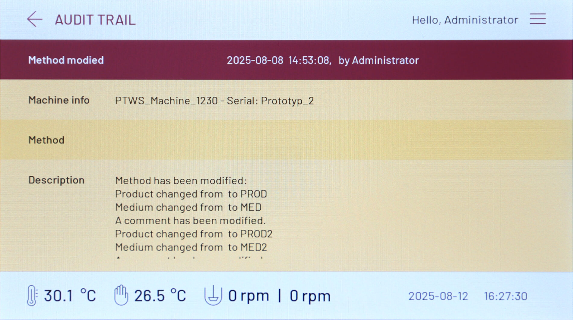 The audit trail system records all events and changes within the instrument, providing a detailed account with both before and after information, fulfilling the regulatory requirements of 21 CFR Part 11. The audit trail can be filtered using criteria such as date & time, user, method and type of event.
