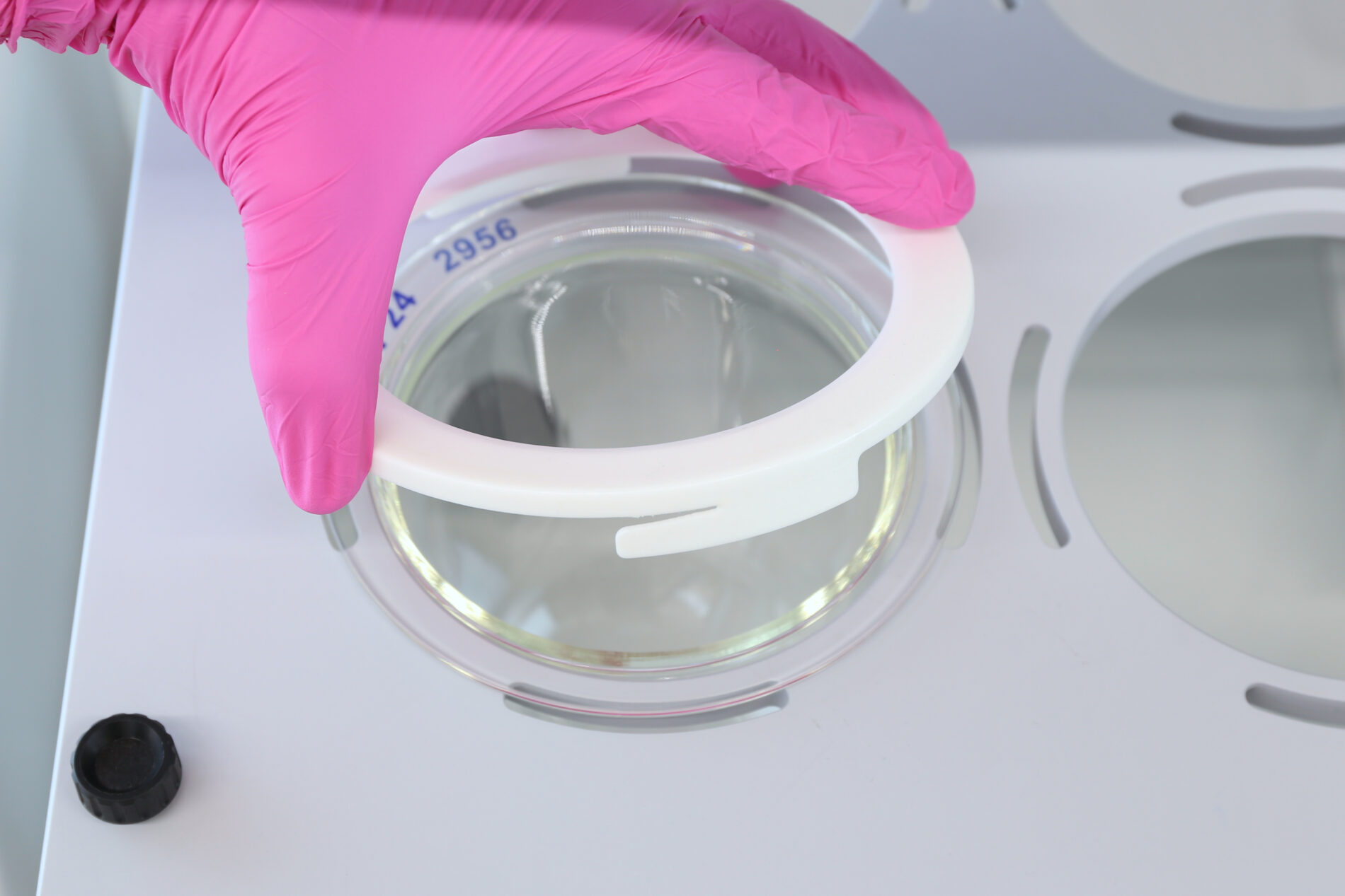 The water bath cover is constructed from Aluminum, offering dimensional stability. Dissolution vessels are inserted into rings fixed to the water bath cover and secured using centering rings equipped with a 3-way bayonet catch mechanism.